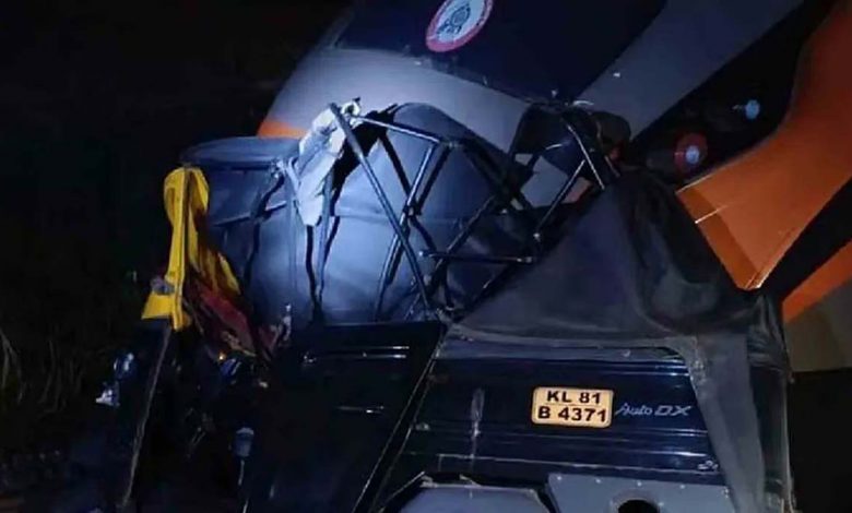 വര്ക്കലയില് റെയില്വേ പ്ലാറ്റ്ഫോമിലൂടെ ഓടിച്ച ഓട്ടോ മറിഞ്ഞ് വന്ദേഭാരത് ട്രെയിനിലയിടിച്ചു