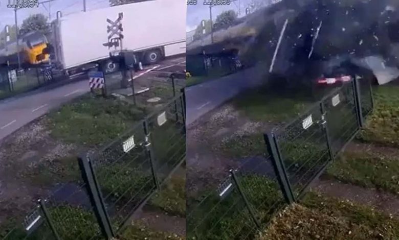 ആംസ്റ്റർഡാം : അതിവേഗത്തിൽ കുതിച്ചെത്തിയ ബുള്ളറ്റ് ട്രെയിൻ ലെവൽ ക്രോസിങ്ങിലെ ലോറിയിൽ ഇടിച്ചുകയറുമ്പോൾ ചുറ്റും ചിതറിത്തെറിക്കുന്നത് പിയർ പഴങ്ങൾ. പഴം കയറ്റിയെത്തിയ ലോറിയുടെ പിൻഭാഗം മുഴുവൻ തകർത്ത ട്രെയിൻ ഒന്നുമറിയാതെ മുന്നോട്ടുകുതിക്കുന്നു. സെൻട്രൽ നെതർലാൻഡ്സിലെ മെറ്റെറനിലുള്ള ഒരു ലെവൽ ക്രോസിങ്ങിൽ നടന്ന അപകടത്തിന്റെ സി.സി.ടി.വി ദൃശ്യങ്ങൾ സമൂഹമാധ്യമങ്ങളിൽ വൈറലാണിപ്പോൾ.