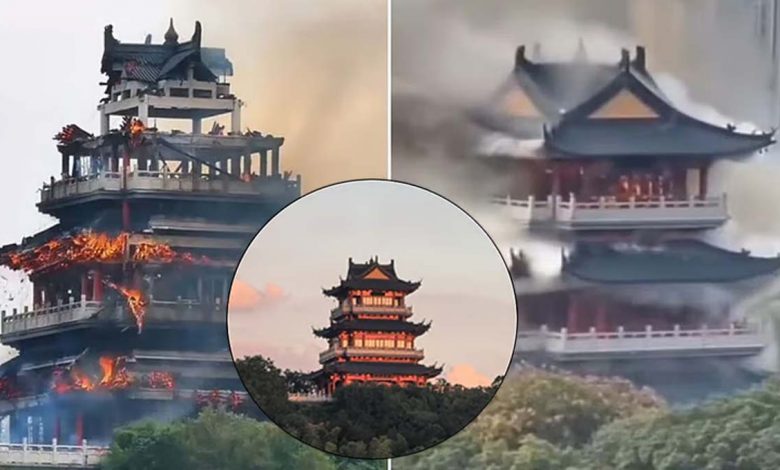 മെഴുകുതിരിയിൽ നിന്ന് തീ പടർന്നു; ചൈനയിലെ പ്രശസ്തമായ പർവതക്ഷേത്രസമുച്ചയം കത്തി നശിച്ചു