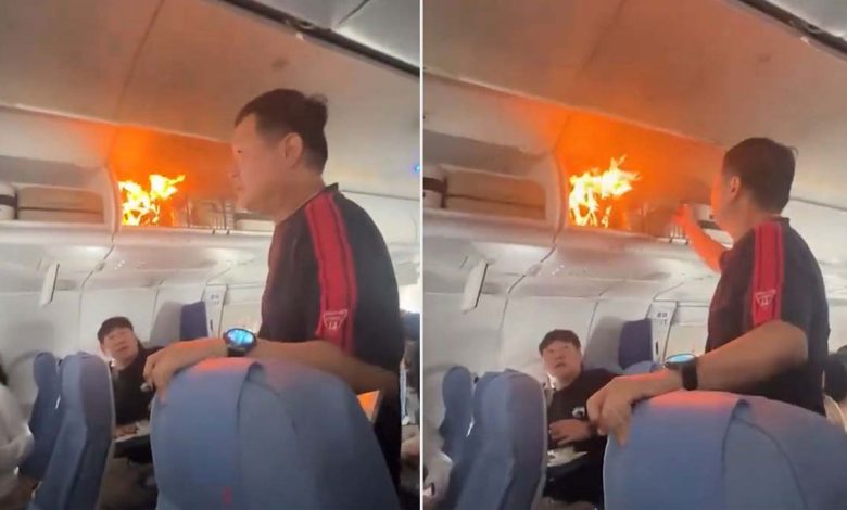 ഹാങ്‌ഷൗ -സിയോൾ എയർ ചൈന വിമാനത്തിലെ ലഗേജ് കംപാർട്മെന്റിൽ യാത്രക്കാരെ ഭയചകിതരാക്കി തീ