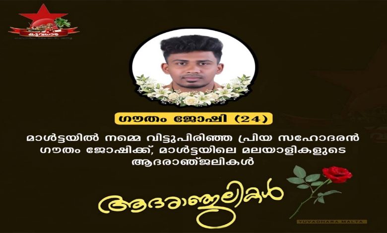 മാൾട്ടയിലെ മലയാളി സമൂഹത്തെ ദുഃഖത്തിലാഴ്ത്തി ഗൗതം ജോഷി വിട്ടുപിരിഞ്ഞു