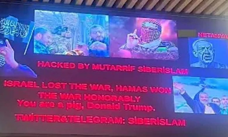“ഇസ്രായേൽ യുദ്ധം തോറ്റു, ഹമാസ് യുദ്ധം ജയിച്ചു” എന്ന് ബ്രിട്ടീഷ് കൊളംബിയയിലെ കെലോവ്ന അന്താരാഷ്ട്ര വിമാനത്താവളത്തിലെ ഫ്ലൈറ്റ് ഇൻഫർമേഷൻ ഡിസ്‌പ്ലേയിൽ ഹാക്കർമാർ പ്രദർശിപ്പിച്ചു.