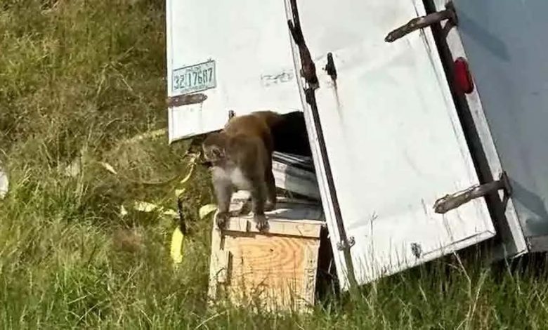 മിസിസിപ്പിയിൽ അതിജാഗ്രത; പരീക്ഷണശാല വാഹനം മറിഞ്ഞ് വൈറസ് ബാധിതരായ കുരങ്ങുകൾ പുറത്തുചാടി