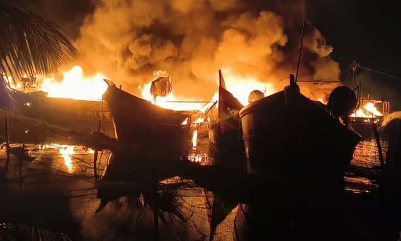കൊല്ലത്ത് വന് തീപിടിത്തം; പതിനഞ്ചോളം മത്സബന്ധന ബോട്ടുകളും ചീനവലകളും കത്തിനശിച്ചു