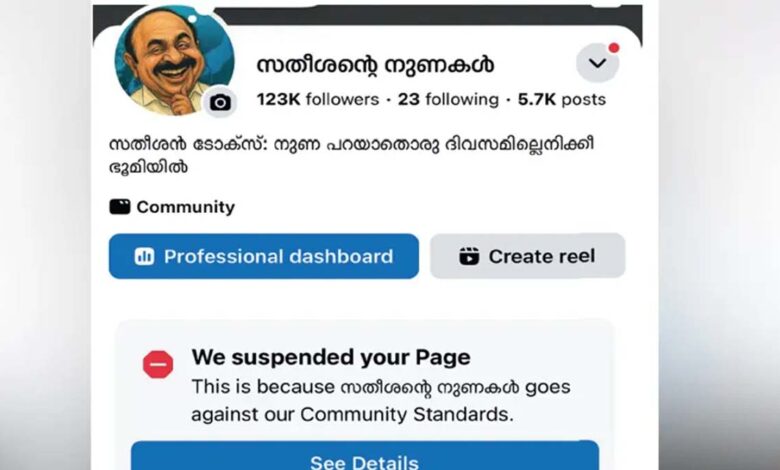 തിരുവനന്തപുരം​ : പ്രതിപക്ഷ നേതാവ് പറഞ്ഞ നുണകളും അതിന്റെ വസ്തുതയും വിവരിക്കുന്ന “സതീശന്റെ നുണകൾ’ എന്ന ഫാക്റ്റ് ചെക്ക് പേജിന് മെറ്റയുടെ വിലക്ക്. രണ്ടാഴ്ച്ച മുമ്പ് ആരംഭിച്ച പേജ് ചുരുങ്ങിയ ദിവസങ്ങൾ കൊണ്ട് വൈറലായിരുന്നു. പേജിന് നേരെ കോൺഗ്രസ് ഐടി സെൽ ചാറ്റ് ബോട്ട് സംഘത്തെ ഉപയോഗിച്ച് കൃത്രിമ ഫോളോവേഴ്സിനെ സൃഷ്ടിച്ച് വിശ്വാസ്യത കളയാൻ ശ്രമം നടത്തിയിരുന്നു. എന്നാൽ പേജിന്റെ അഡ്മിൻ ഈ കാര്യം ചൂണ്ടിക്കാട്ടി പോസ്റ്റ് ഇട്ടതോടെ ആ നീക്കം പാളി. ഇതിന് പിന്നാലെയാണ് വ്യാഴാഴ്ച്ച രാത്രി ഏഴോടെ പേജിന് മെറ്റ വിലക്ക് ഏർപ്പെടുത്തിയത്. കമ്യൂണിറ്റി മാനദണ്ഡങ്ങൾക്ക്‌ വിരുദ്ധമാണ് പേജ് എന്നാണ് മെറ്റക്ക് ലഭിച്ച പരാതിയെന്നാണ് വിവരം. പേജ് പൂട്ടിച്ചതിന് പിന്നിൽ കനഗോലു വാടകയ്ക്ക് എടുത്ത സംഘം ആണെന്ന് ഡിവൈഎഫ്ഐയുടെ വിമർശനം .