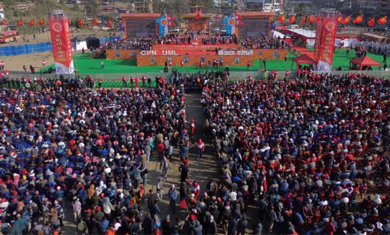ചെങ്കടലായി നേപ്പാൾ; 70000 പേരെ അണിനിരത്തി നേപ്പാളിൽ വൻ ശക്തിപ്രകടനം നടത്തി കമ്യൂണിസ്റ്റ് പാർട്ടി