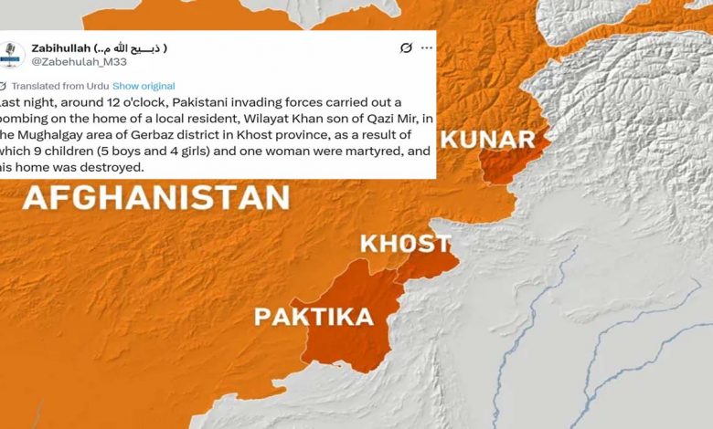 അഫ്ഗാനിസ്താനിൽ പാകിസ്താൻ ബോംബ് ആക്രമണം; 10 പേർ കൊല്ലപ്പെട്ടു