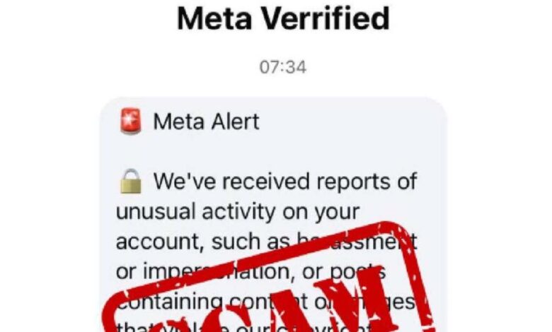 നിങ്ങളുടെ അക്കൗണ്ടിൽ അസാധാരണമായ പ്രവർത്തനം കണ്ടെത്തിയെന്നും ഇമെയിൽ വഴിയോ ചില സന്ദർഭങ്ങളിൽ ഒരു മൊബൈൽ ഫോൺ നമ്പർ വഴിയോ അയച്ച ലിങ്ക് വഴി നിങ്ങളുടെ ഐഡന്റിറ്റി പരിശോധിക്കണമെന്നും സന്ദേശങ്ങൾ അവകാശപ്പെടും. ഇത്തരം സന്ദേശം തട്ടിപ്പാണ്, അത്തരം സന്ദേശങ്ങളിൽ അടങ്ങിയിരിക്കുന്ന ലിങ്കുകളിൽ ക്ലിക്ക് ചെയ്യരുതെന്നും വ്യക്തിഗത വിശദാംശങ്ങളോ പാസ്വേഡുകളോ അക്കൗണ്ട് വിവരങ്ങളോ നൽകരുതെന്നും നിർദ്ദേശിക്കുന്നു. ഇതുപോലുള്ള അക്ഷരത്തെറ്റുകളോ വ്യാകരണ പിശകുകളോ അടങ്ങിയ സന്ദേശങ്ങൾ തട്ടിപ്പിന്റെ സാധാരണ സൂചകങ്ങളാണെന്നും നിങ്ങൾക്ക് അത്തരമൊരു സന്ദേശം ലഭിക്കുകയാണെങ്കിൽ, സന്ദേശം ഡിലീറ്റ് ചെയ്ത് മെറ്റയെ അറിയിക്കാൻ ശുപാർശ ചെയ്യുന്നതായും പോലീസ് പ്രസ്താവനയിൽ പറഞ്ഞു.
