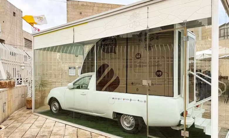 ഗസ്സയിലെ കുഞ്ഞുങ്ങൾക്കായി ഓടിയെത്താൻ ഫ്രാൻസിസ് മാർപാപ്പയുടെ വാഹനം മൊബൈല്‍ ഹെല്‍ത്ത് ക്ലിനിക്കായി