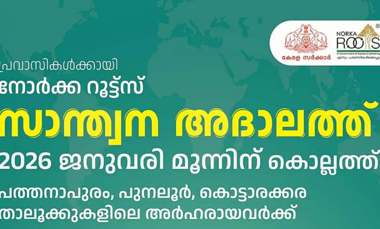 പ്രവാസി നോര്ക്ക റൂട്ട്സ് സാന്ത്വന അദാലത്ത് കൊല്ലത്ത്; രജിസ്റ്ററേഷൻ ആരംഭിച്ചു