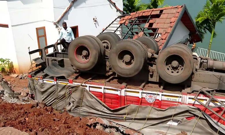ഫറോക്കിൽ റോഡ് ഇടിഞ്ഞ് ലോറി വീടിന് മുകളിലേക്ക് മറിഞ്ഞു