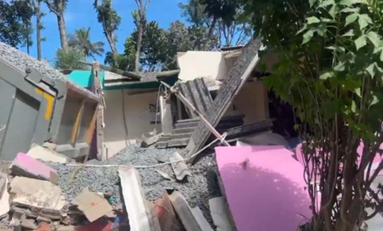 ഇടുക്കിയില് ടോറസ് ലോറി വീടിന് മുകളിലേക്ക് മറിഞ്ഞു