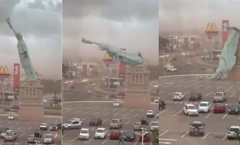 ബ്രസീലിലെ സ്റ്റാച്യു ഓഫ് ലിബർട്ടി കൊടുങ്കാറ്റിൽ മറിഞ്ഞുവീണു