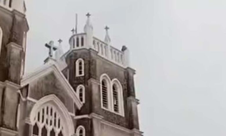 ശക്തമായ ഇടിമിന്നല്‍: കോതമംഗലം സെന്റ് ജോര്‍ജ് കത്തീഡ്രലിന്റെ മുകള്‍ഭാഗം അടര്‍ന്നുവീണു