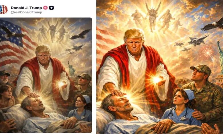 പ്രതിഷേധം കനത്തു; സ്വയം യേശുവായി പ്രത്യക്ഷപ്പെടുന്ന ചിത്രം പിൻവലിച്ച് ട്രംപ്