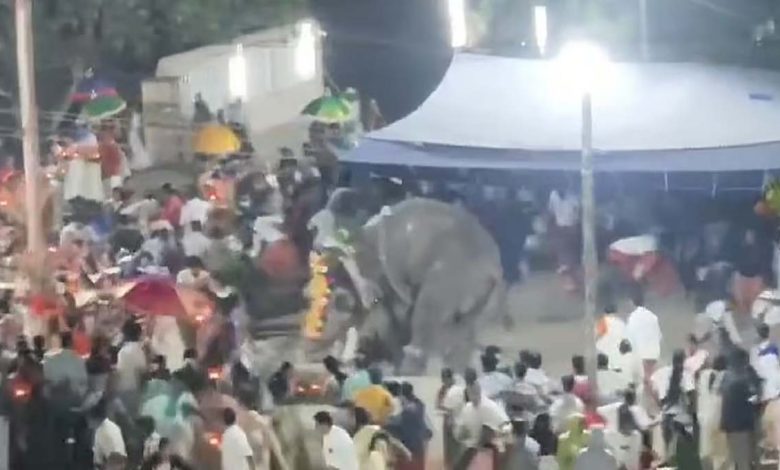 ഇന്നലെ രാത്രി പത്തുമണിയോടെയായിരുന്നു സംഭവം. കൊല്ലത്തുനിന്ന് കൊണ്ടുവന്ന ആനയാണ് ഇടഞ്ഞത്.ക്ഷേത്രത്തിലെ ചടങ്ങുകള്ക്കിടെയാണ് ആന ഇടഞ്ഞത്. ആന പാപ്പാനെ കുടഞ്ഞെറിയുന്നതിന്റെയും ആളുകള് ചിതറിയോടുന്നതിന്റെയും ദൃശ്യങ്ങള് പുറത്തുവന്നിട്ടുണ്ട്.