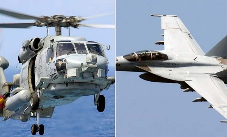 വിമാനവാഹിനിയായ യുഎസ്എസ് നിമിറ്റ്സില് നിന്ന് നിരീക്ഷണ പറക്കല് നടത്തുമ്പോഴാണ് എംഎച്ച് 60 ആര് ഹെലികോപ്റ്റര് കടലില് തകര്ന്നു വീണത്. മൂന്നു പേരെ രക്ഷപ്പെടുത്തി. 30 മിനിട്ടുകള്ക്കുശേഷമാണ് ബോയിങ് എഫ്എ18 എഫ് സൂപ്പര് ഹോണറ്റ് വിമാനം തകര്ന്നു വീണത്. നിരീക്ഷണ പറക്കല് നടത്തുകയായിരുന്നു വിമാനം. പൈലറ്റുമാരെ രക്ഷപ്പെടുത്തി.വ്യത്യസ്ത സമയങ്ങളില് നടന്ന അപകടങ്ങളെക്കുറിച്ച് യുഎസ് നേവി അന്വേഷണം ആരംഭിച്ചിട്ടുണ്ട്.