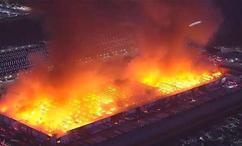 കാലിഫോർണിയയിലെ പേപ്പർ ഉൽപ്പന്ന വിതരണ കേന്ദ്രത്തിൽ വൻ തീപിടിത്തം; ജീവനക്കാരൻ അറസ്റ്റിൽ
